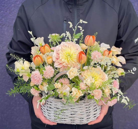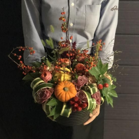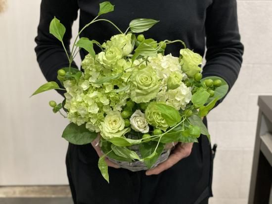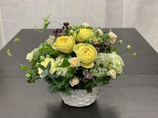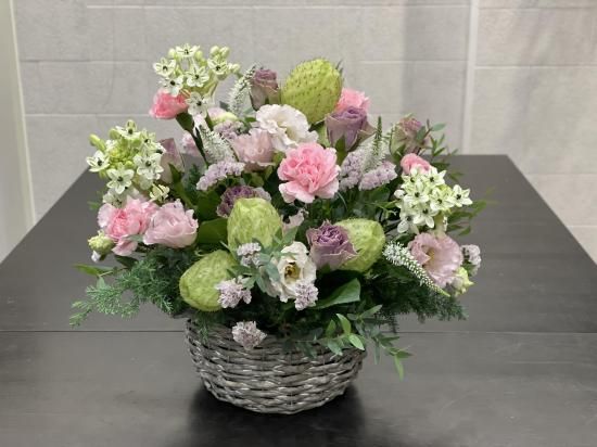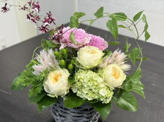 ご注文いただく季節に応じてアレンジメントを作成いたします。カゴも在庫によって