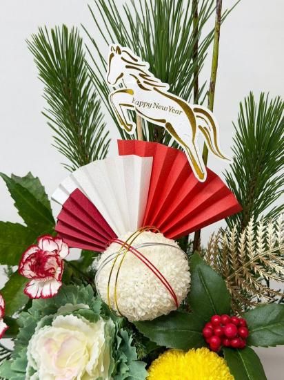 華やかに新春を寿ぐ、すみれ花店オリジナル2026年迎春アレンジ。