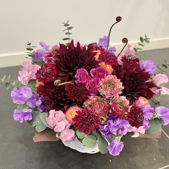 ▼季節によってはないお花もありますので同じ商品はお作り出来ませんが、ご注文いただく季節に応じてアレンジメントを作成いたします。