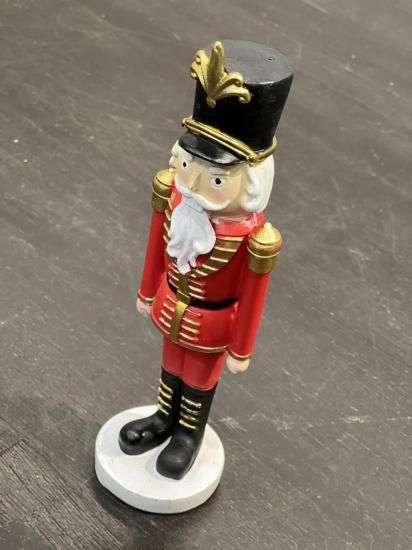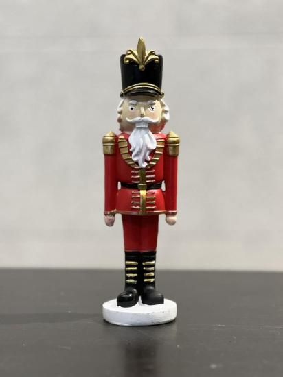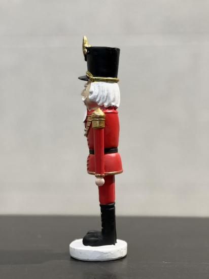 赤い制服と黒帽子が凛々しく輝く、華やかな雰囲気のくるみ割り人形のオブジェ。